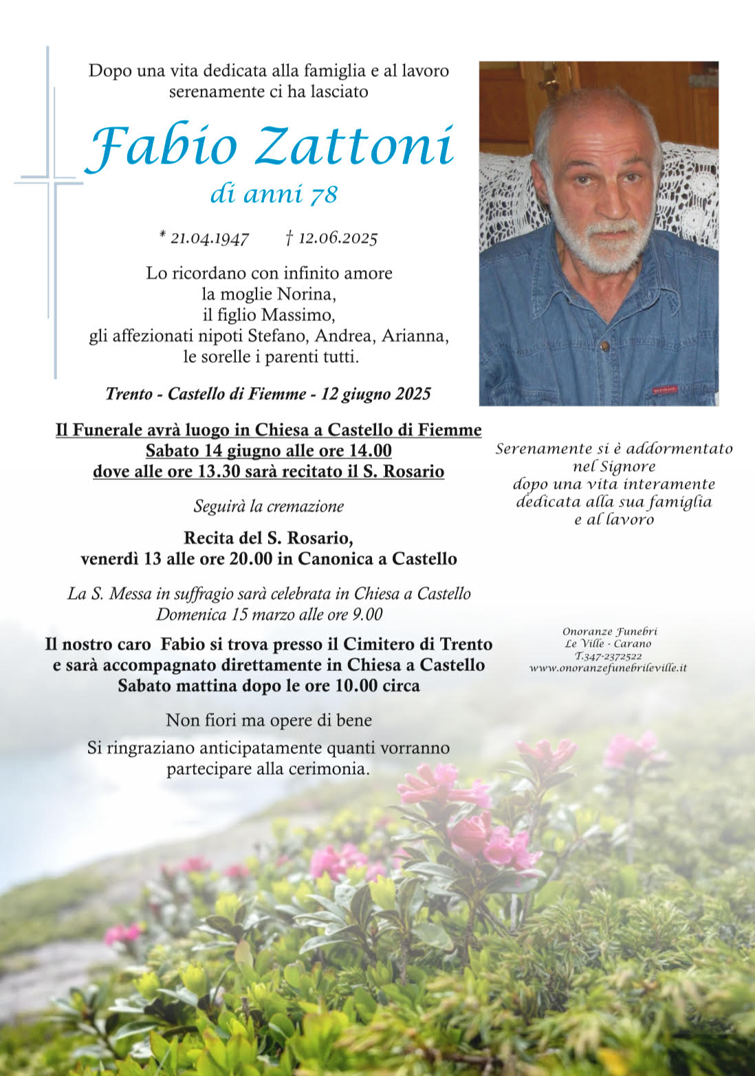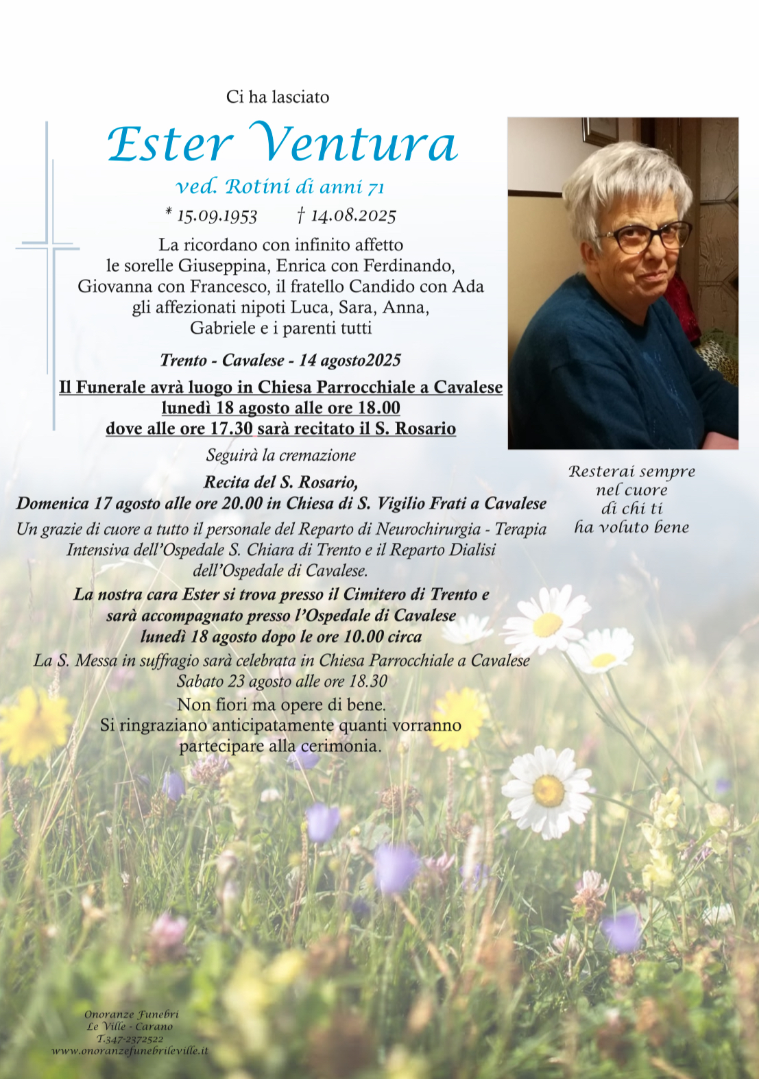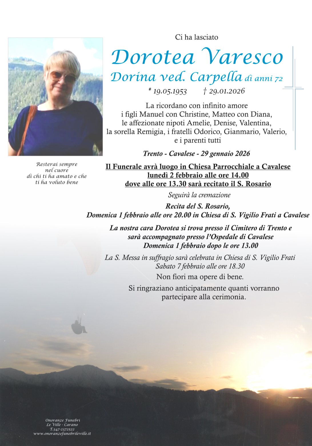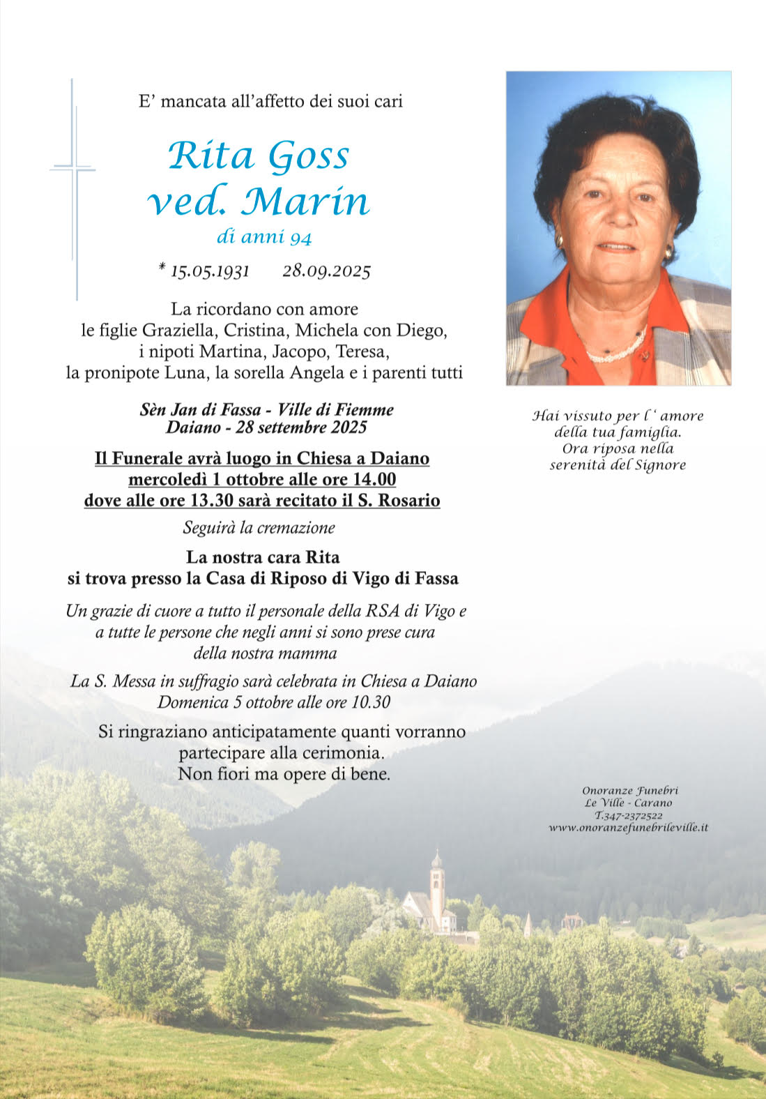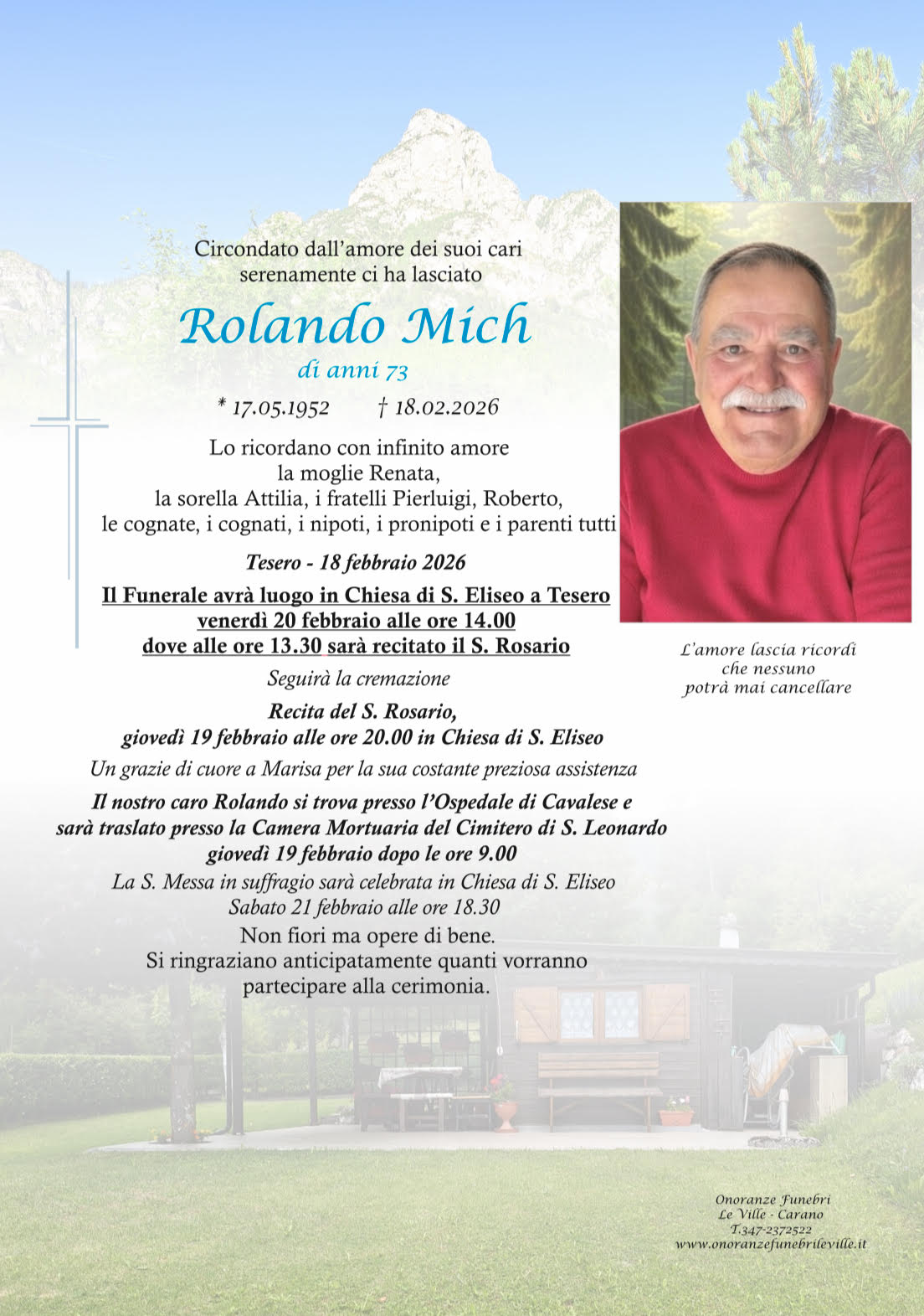 Onoranze Funebri Le Ville, con sede a Ville di Fiemme, frazione di Carano, è un’impresa di onoranze funebri presente in Valle di Fiemme da oltre 10 anni.