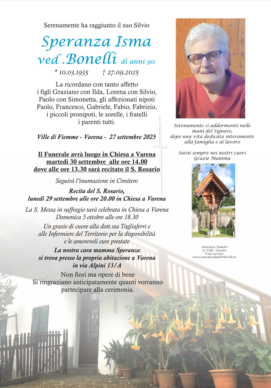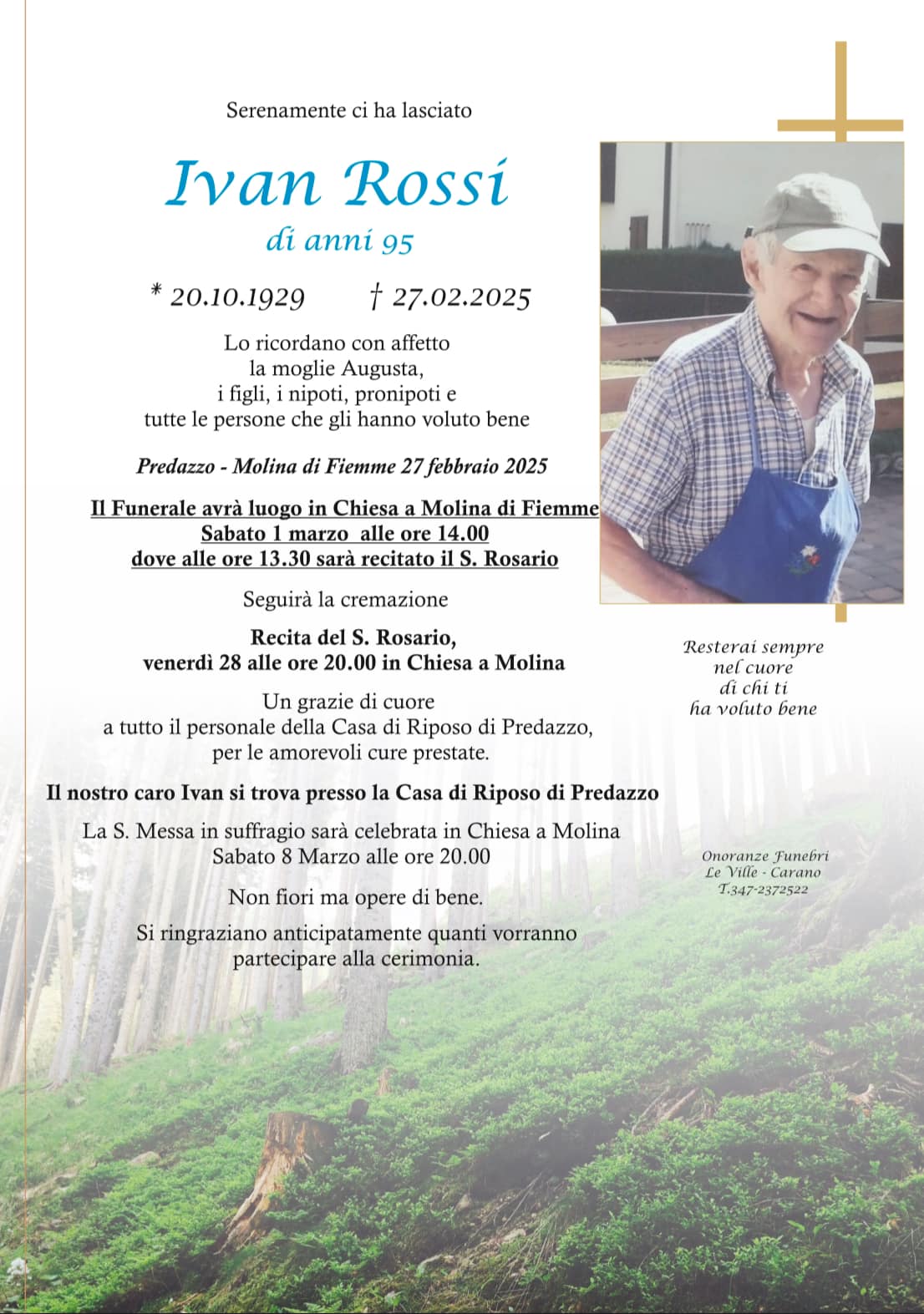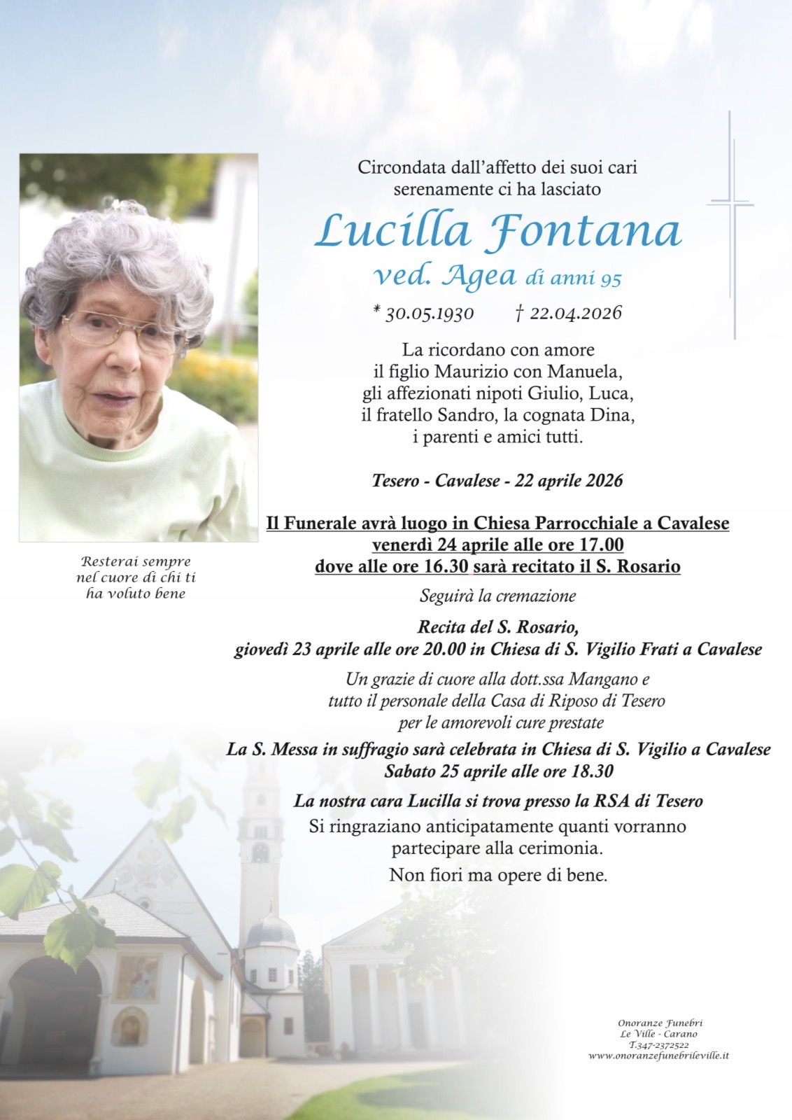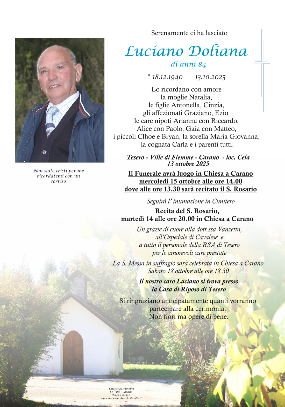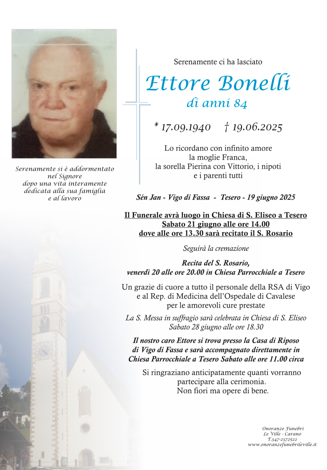 Onoranze Funebri Le Ville, con sede a Ville di Fiemme, frazione di Carano, è un’impresa di onoranze funebri presente in Valle di Fiemme da oltre 10 anni.