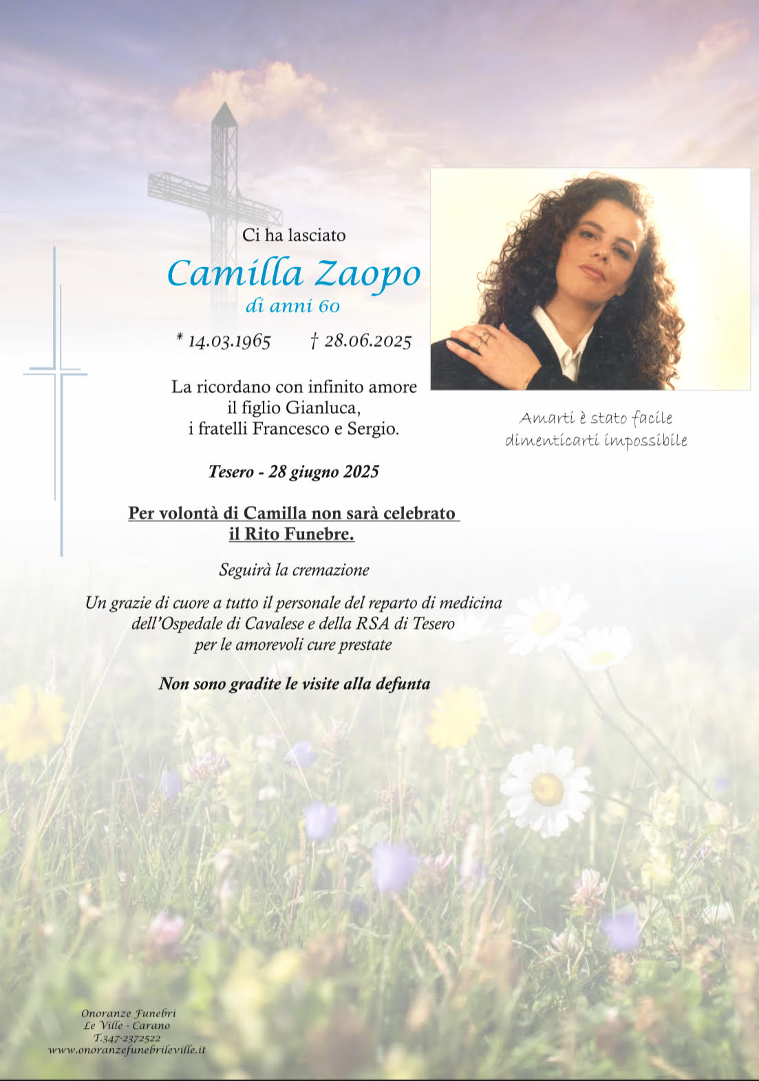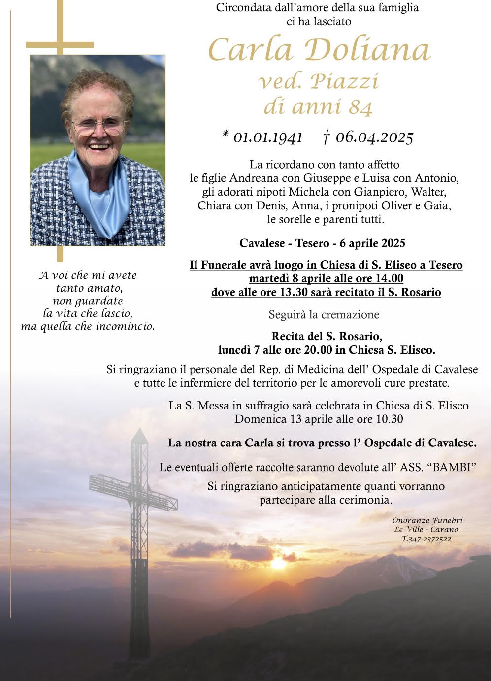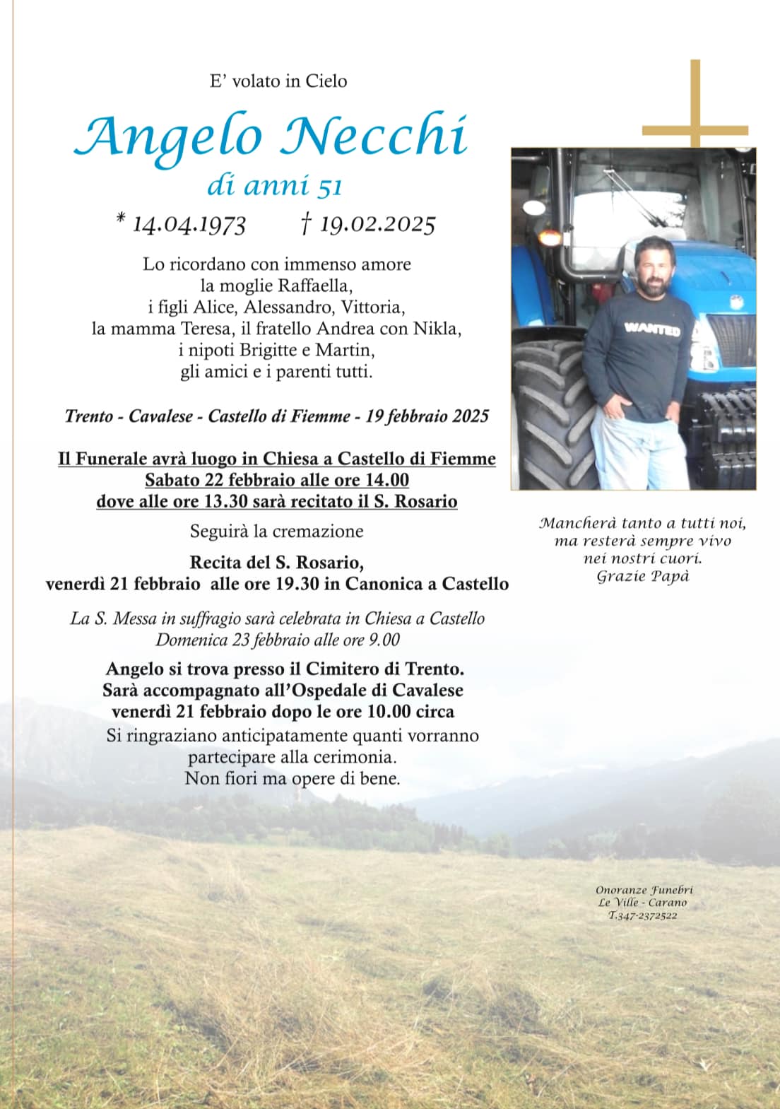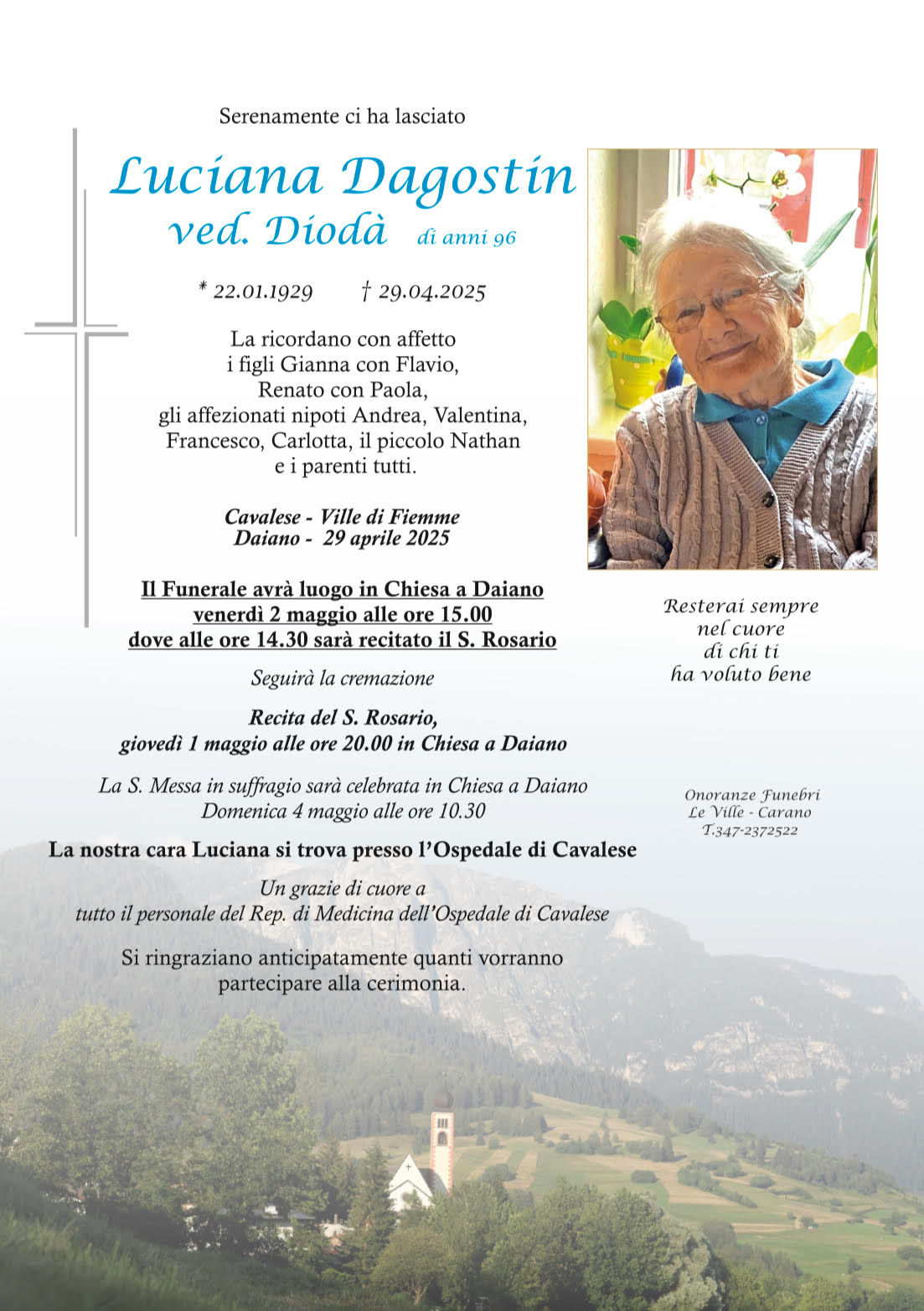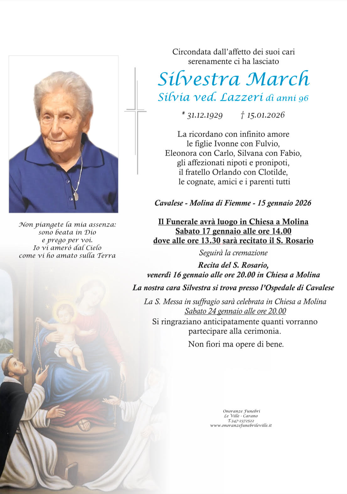 Onoranze Funebri Le Ville, con sede a Ville di Fiemme, frazione di Carano, è un’impresa di onoranze funebri presente in Valle di Fiemme da oltre 10 anni.