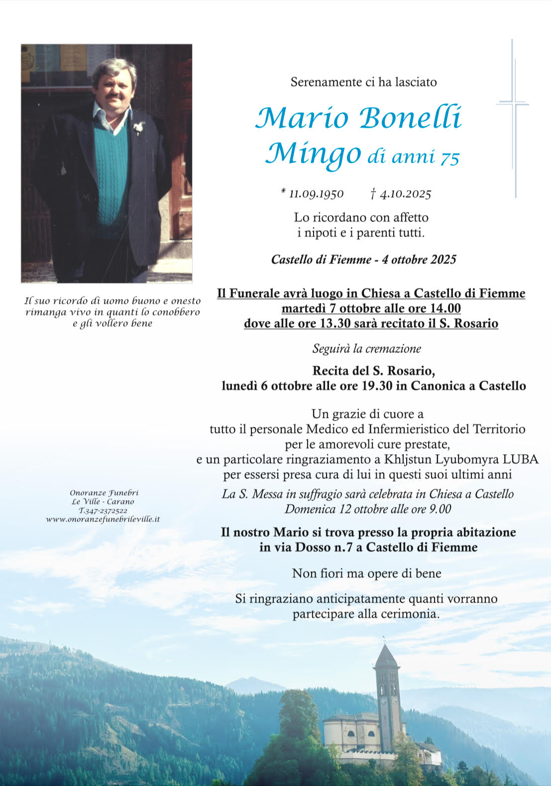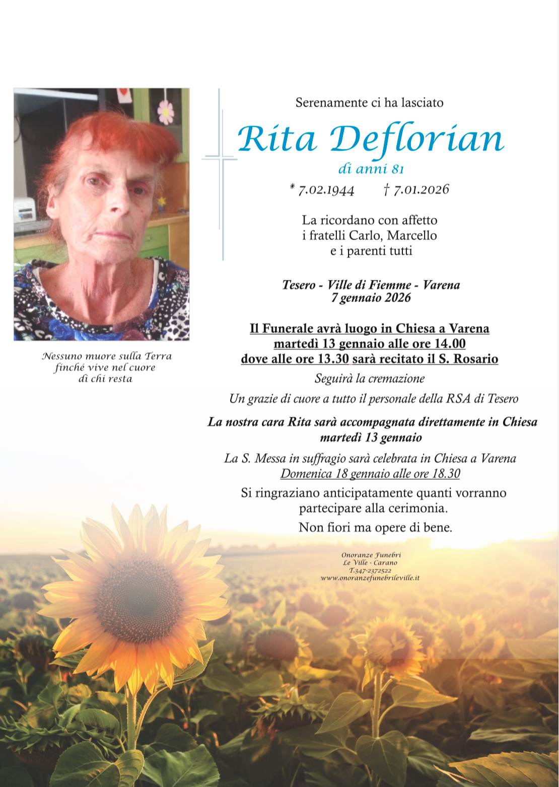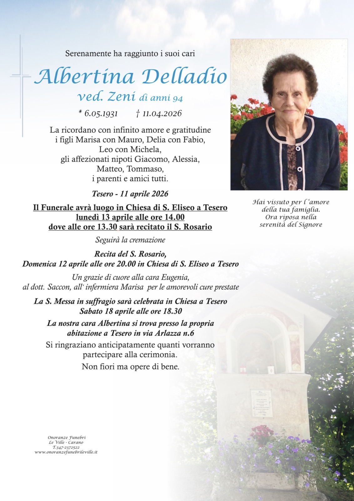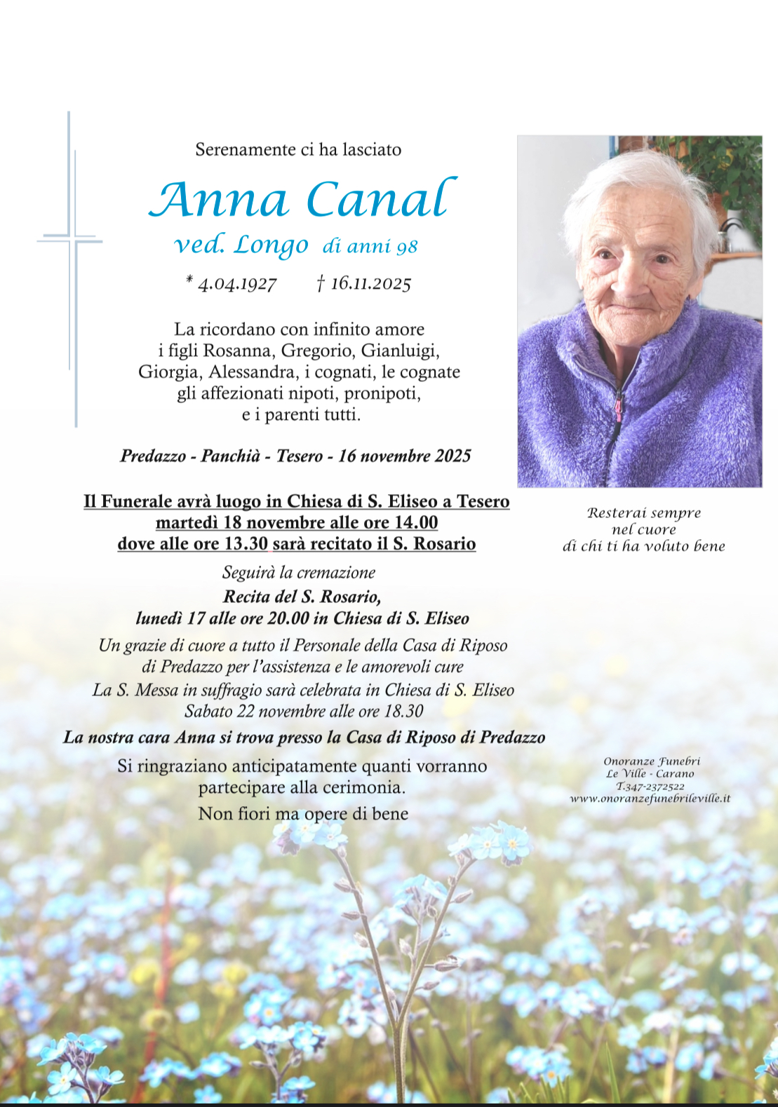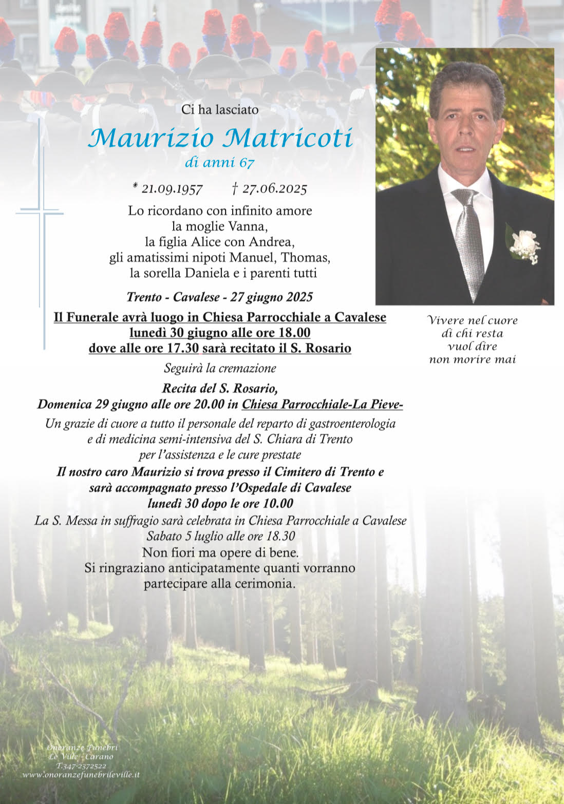 Onoranze Funebri Le Ville, con sede a Ville di Fiemme, frazione di Carano, è un’impresa di onoranze funebri presente in Valle di Fiemme da oltre 10 anni.