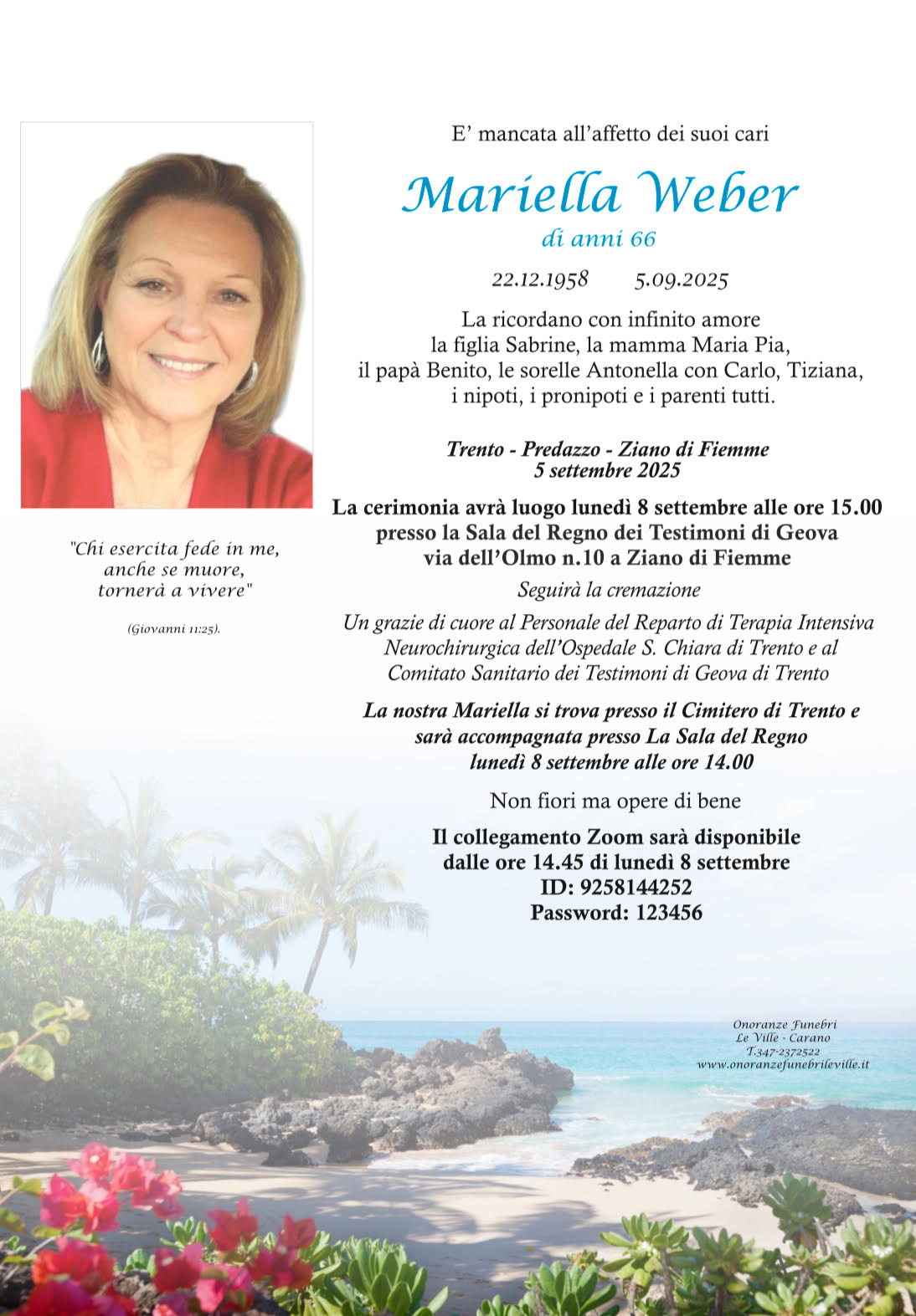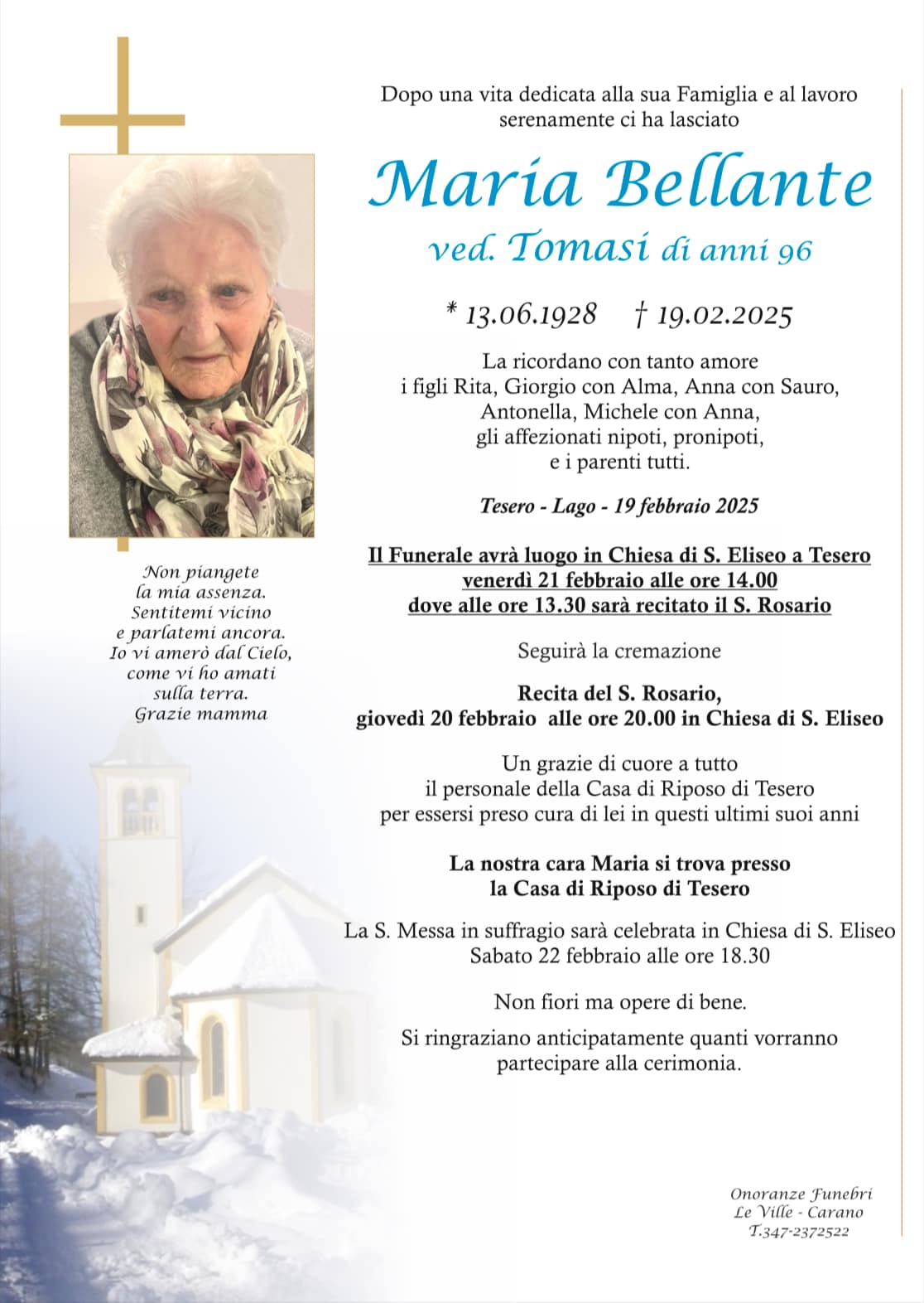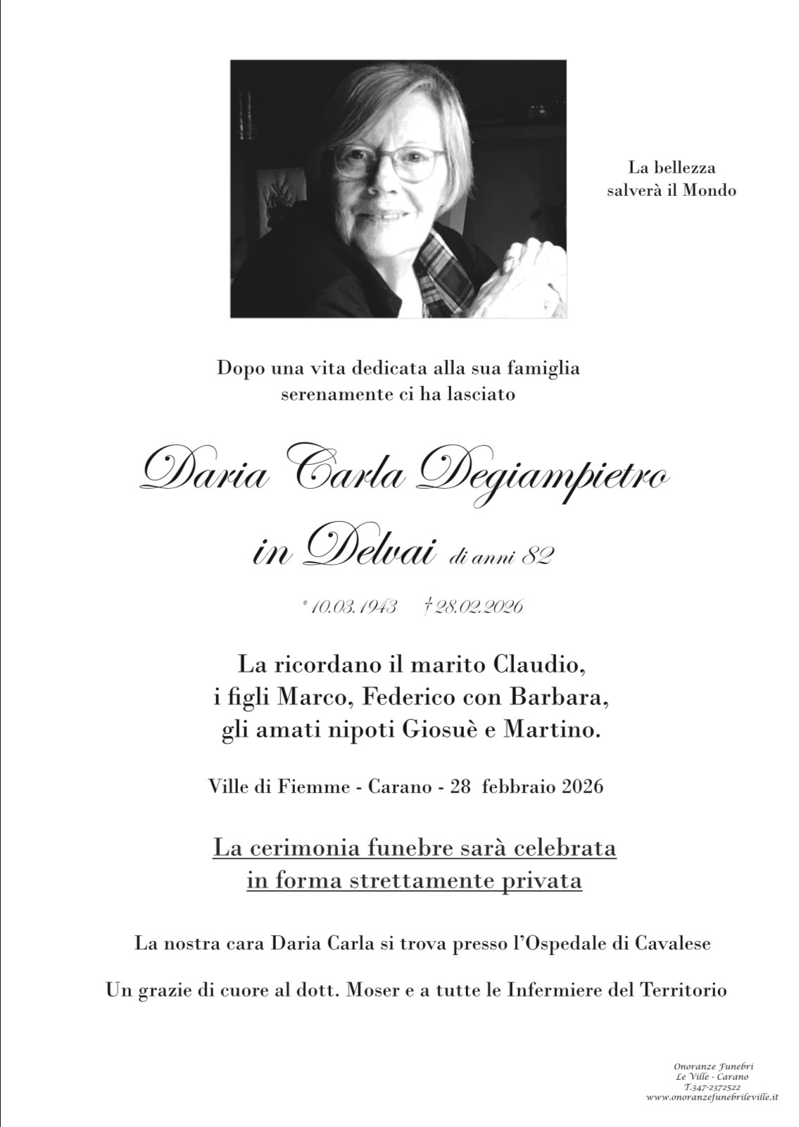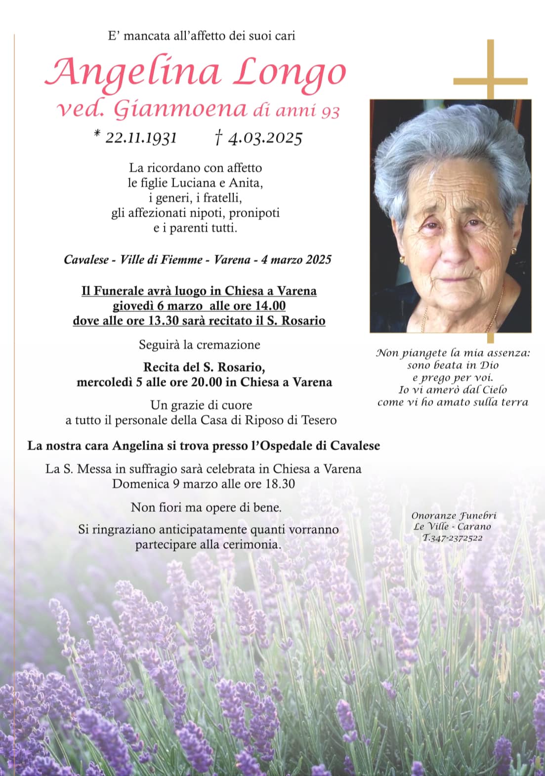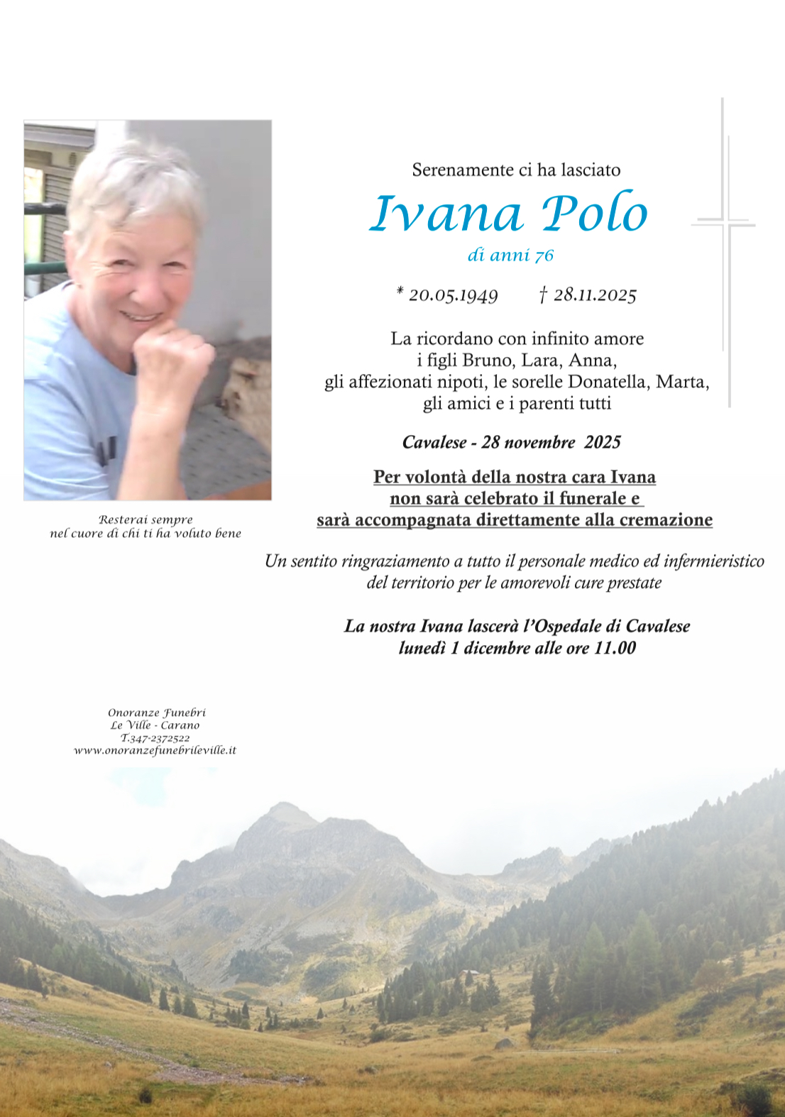 Onoranze Funebri Le Ville, con sede a Ville di Fiemme, frazione di Carano, è un’impresa di onoranze funebri presente in Valle di Fiemme da oltre 10 anni.