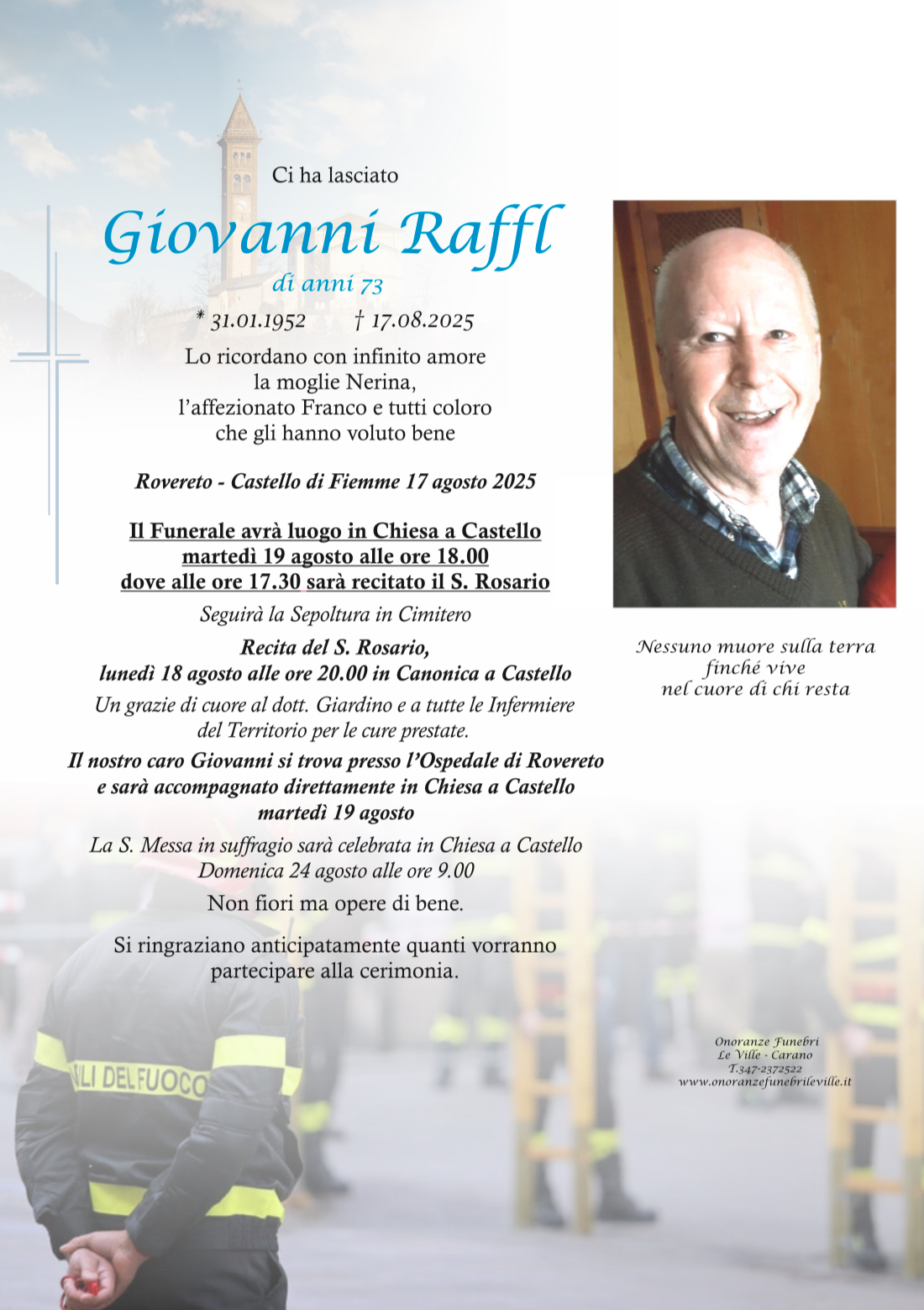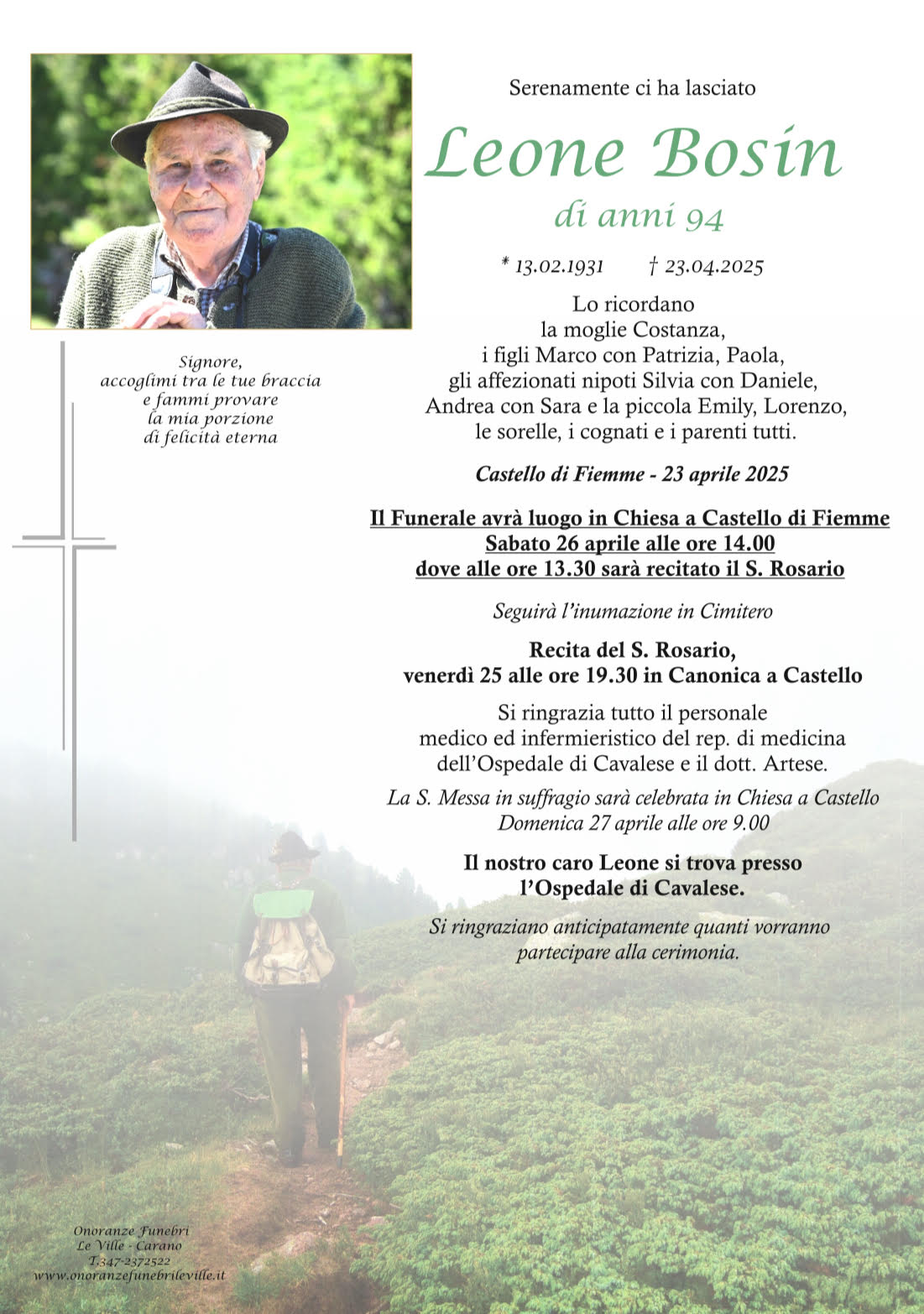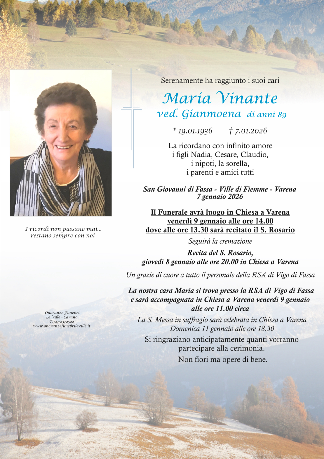 Onoranze Funebri Le Ville, con sede a Ville di Fiemme, frazione di Carano, è un’impresa di onoranze funebri presente in Valle di Fiemme da oltre 10 anni.